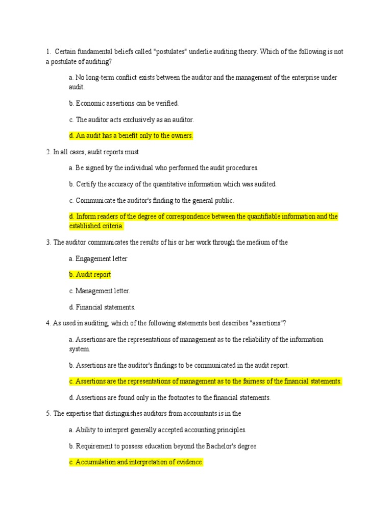 Auditing Multiple Choice Mid Term 2 Proprofs Quiz